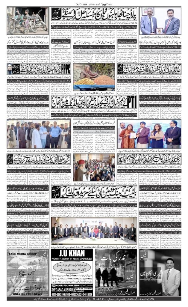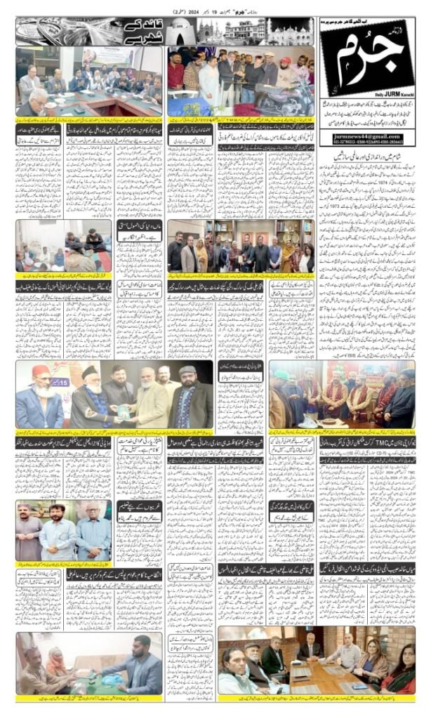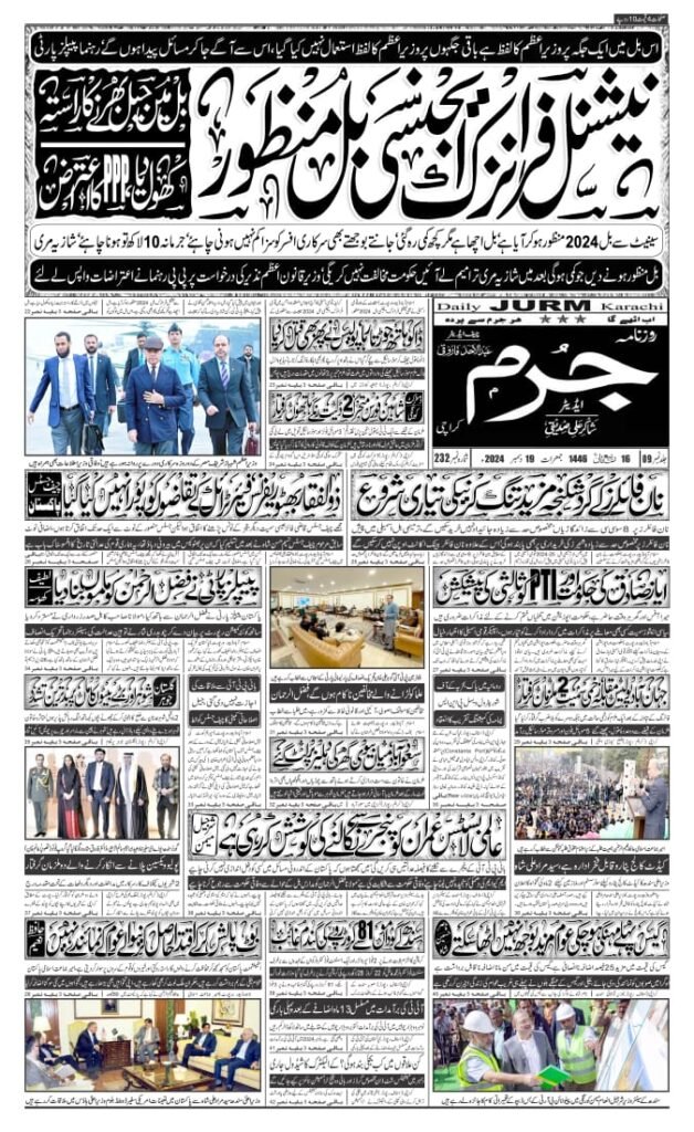 آج مورخہ19دسمبر 2024 کا روزنامہ جرم کراچی