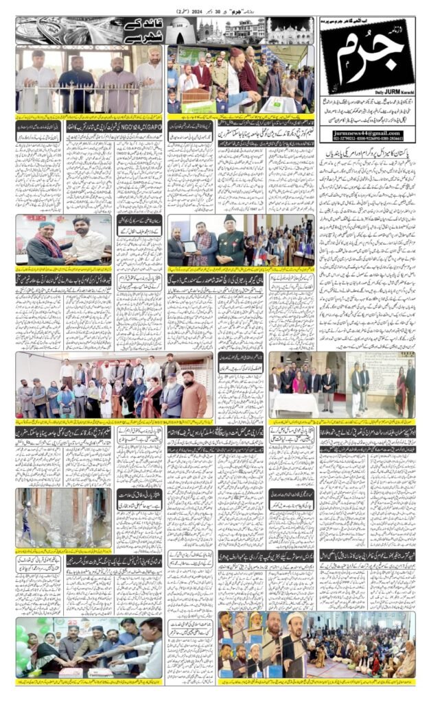 آج مورخہ30دسمبر 2024 کا روزنامہ جرم کراچی